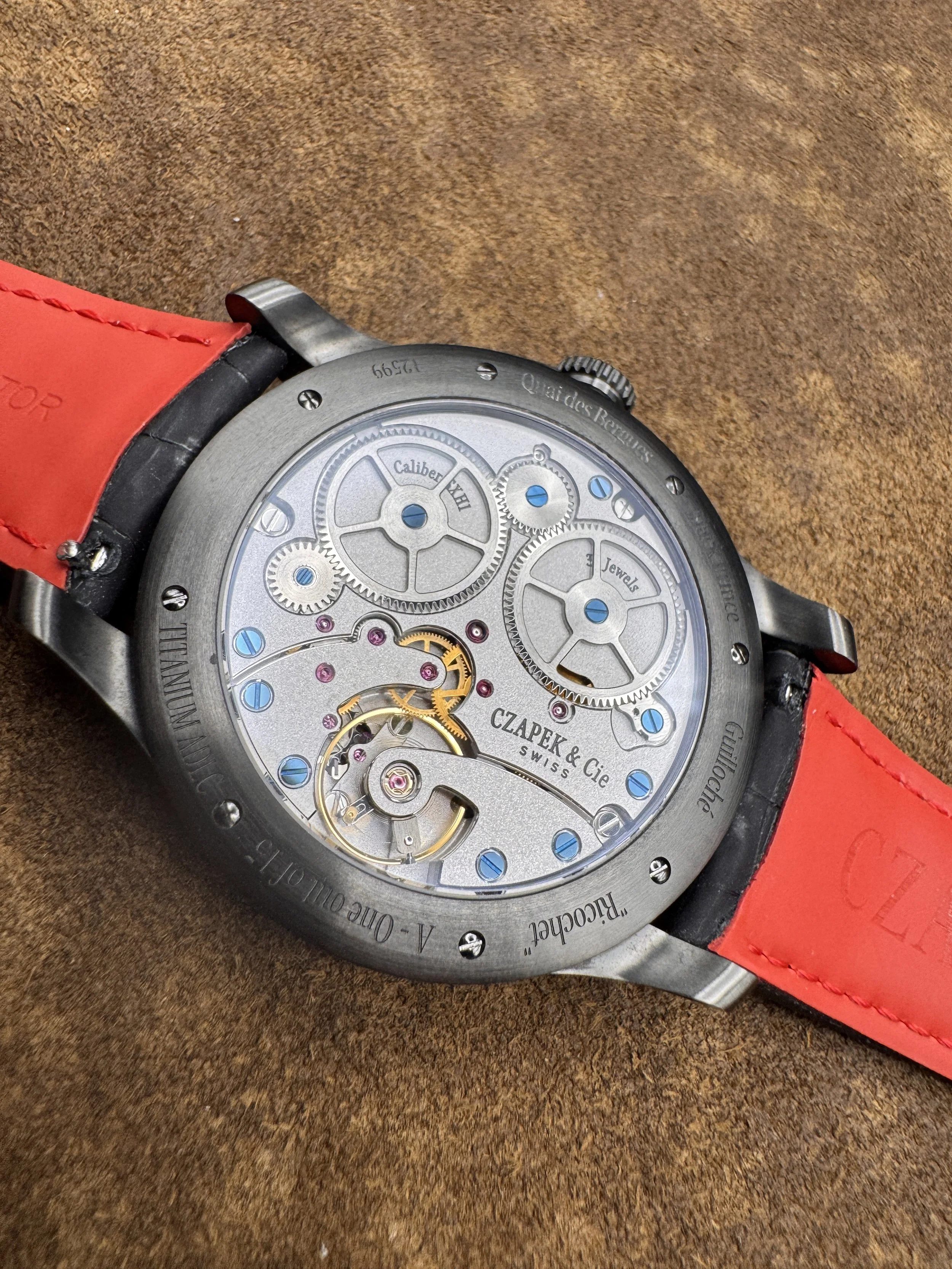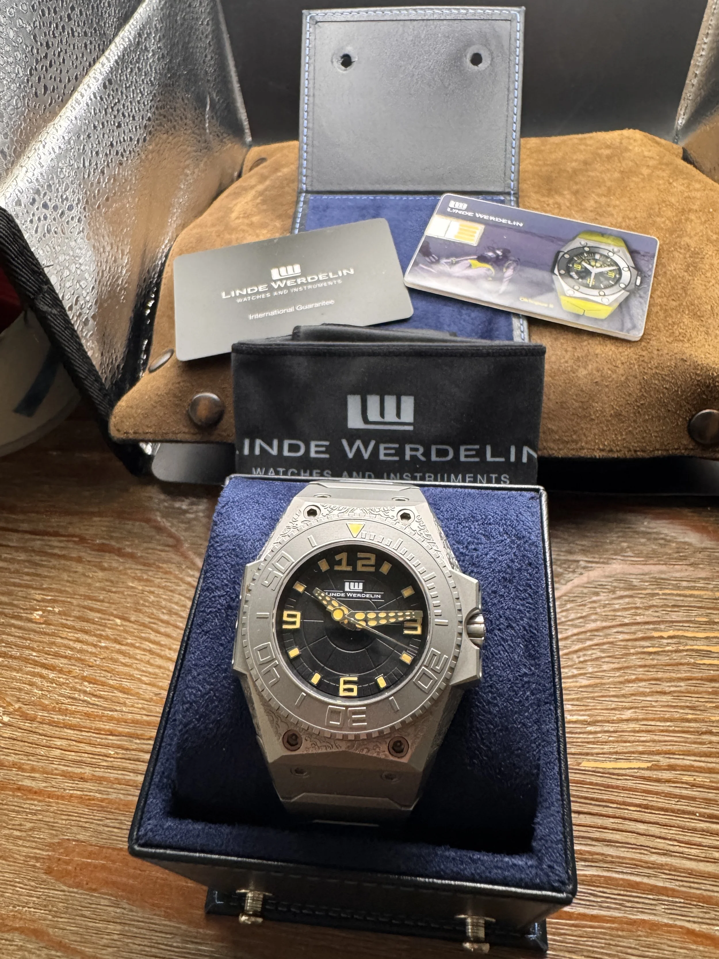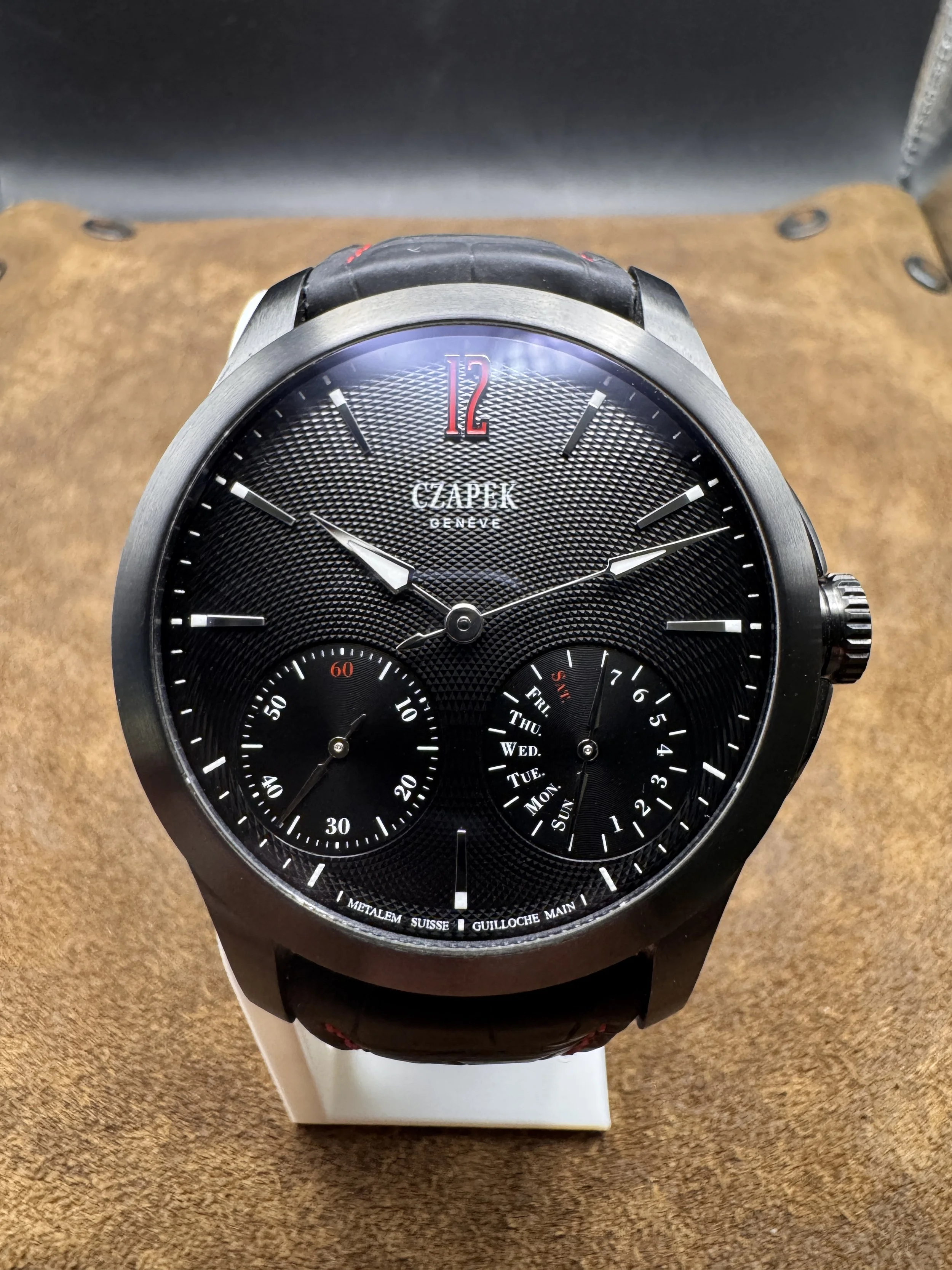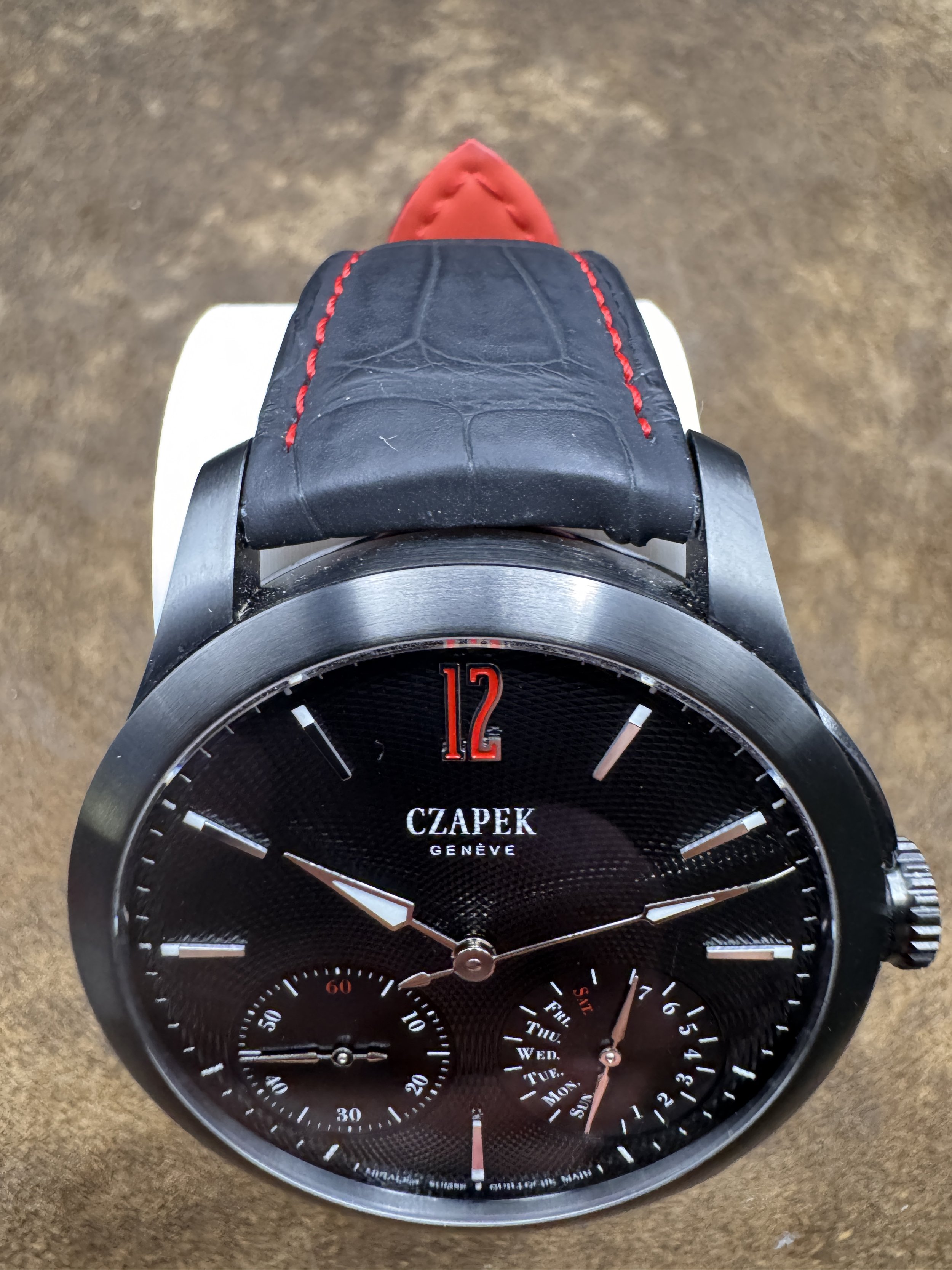 Trade your Watch Patek Philippe 5930G-001 World Time 5930G Chronograph 18k White Gold Blue Dial $56,500.00 Czapek Quai des Bergues Black Prince 1 of 15 special edition - 42.5mm - Full set $24,500.00 Alterum Worldtimer: Los Angeles Edition 56 Hour Power Reserve $3,475.00 Linde Werdelin Oktopus Stainless Steel - TATTOO - SOLD OUT - 100hr PW Reserve $14,500.00 Linde Werdelin SpidoLite II 3DTP Carbon – 3D Movement - 75 made $15,600.00 Czapek Antarctique Passage De Drake Automatic Steel 40mm - ANT PAS ICE WHITE $15,950.00 H. Moser & Cie Pioneer Centre Seconds Cosmic Green Fume Concept 3200-1202 $9,950.00 Panerai PAM01661 PAM 1661 Luminor Marina Carbotech Box/Papers Black Dial 44mm - SOLD $0.00 Longines Heritage Aviation Big Eye Black Dial L2.816.4.53.2 - SOLD $0.00 Christopher Ward C60 Lympstone | 42mm | Ref. C60-42A3H1-SGKK0 - SOLD $0.00 Omega Seamaster Diver 300M 210.30.42.20.03.001 - SOLD $0.00 Panerai Radiomir Base Logo Pam 380 "O" Full Set - SOLD $0.00 BEDAT & CO No.8 Power Reserve ref.888 Automatic - 40mm - $7100 MSRP - SOLD $0.00 BELL&ROSS BR-03 DIVER BLUE BR03-92-DIV - 42mm - SOLD $0.00 Bell & Ross BR 03 Desert Type - SOLD $0.00 Wempe Zeitmeister Ceramic Chronograph WM690001 - 100 pieces limited edition - SOLD $0.00 OMEGA Speedmaster Moonwatch Professional 310.32.42.50.01.001 - SOLD $0.00